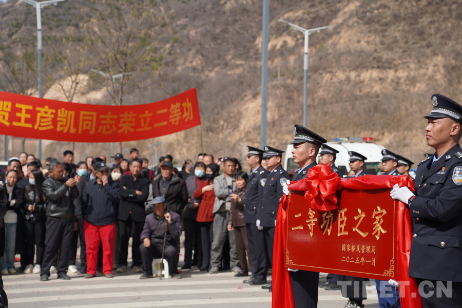 中国西藏网讯 近日,西藏边检总站山南边境管理支队跨越千里远赴甘肃省庆阳市华池县,与驻地公安局、退役军人事务局及地方党委政府等组成送奖队伍,为荣立个人二等功的王彦凯同志“送奖到家”。