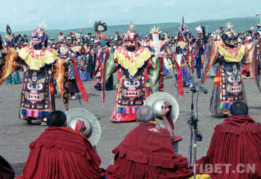 图为那曲镇赛马会上的神舞表演(唐召明1987年摄)