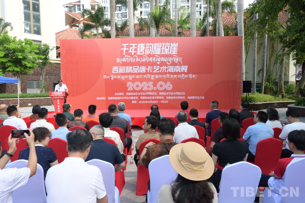 中国西藏网讯 为庆祝西藏自治区成立60周年,进一步深化西藏与海南两地文艺界的交往交流交融,6月28日,由西藏自治区文联、海南省文联主办,西藏自治区美术家协会、海南省美术家协会及西藏珠穆朗玛文学艺术基金会共同承办的“千年唐韵耀琼崖——西藏精品唐卡艺术海南展”在海南开幕。