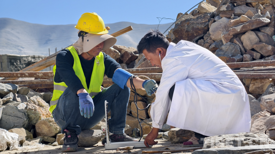 健康守护网,筑牢重建防线。月初顶层浇筑时,施工队员老张不慎踩中铁钉。驻村工作队立刻协同村医贡嘎旦增现场处置,全程跟踪治疗确保伤口未感染。贡嘎旦增的足迹遍布工地,开展健康服务5轮,测量血压47人次,发放常用药品30余份,覆盖200余人。乡卫生院院长为19名群众定制慢性病方案,藏医拉姆的“呼吸调节法”更有效舒缓了70余人的心理焦虑。