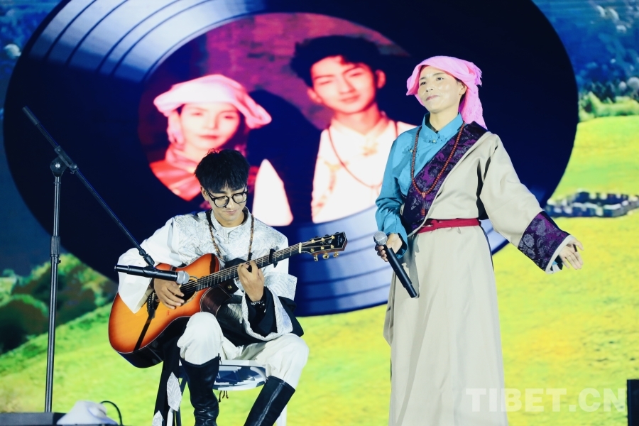 图为歌手组合丹正母子在启幕仪式上演唱了其代表作歌曲《别哭》《大风吹过青瓦房》,赢得台下欢呼阵阵。摄影:龙真多吉