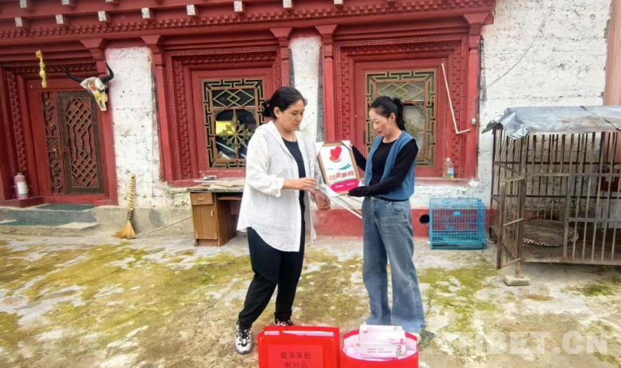 中国西藏网讯 近日,四川省甘孜藏族自治州得荣县妇联、县文明办工作人员来到太阳谷镇松堆村,将州级“最美家庭”荣誉送到村民扎西拉姆家。这份荣誉不仅是对他们多年来在家风建设、文化传承、公益服务中突出表现的肯定,更让新时代文明实践的“种子”落地生根。