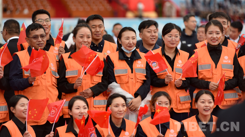 在西藏自治区成立60周年庆祝大会现场,一群身着橙色马甲的群众代表特别显眼,他们是来自西藏交通系统各条战线上的职工。他们能够受邀来到布达拉宫广场,见证西藏自治区成立60周年这一历史性时刻,具有特别的意义。
