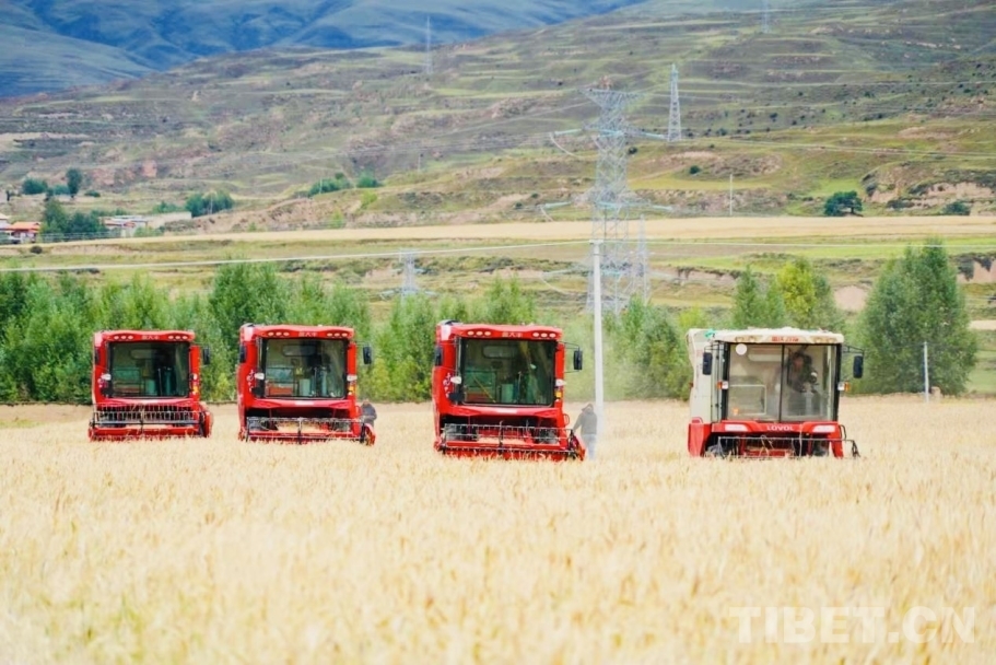 据了解,目前,甘孜县全县200余台收割机正抢抓农时,秋收进度已完成5%,预计9月中旬全面结束。(中国西藏网 记者/龙真多吉 供图/甘孜县委宣传部 甘孜县融媒体中心)