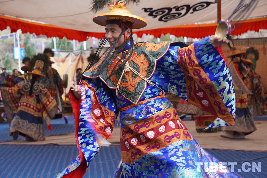 图为正在跳金刚舞的萨迦寺僧人摄影:张宇