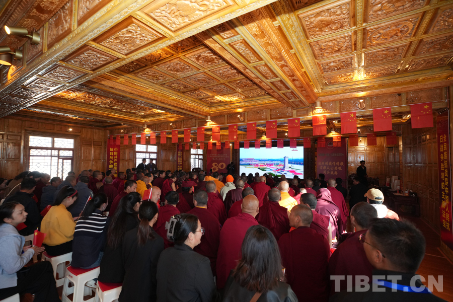 中国西藏网讯 9月3日上午,纪念中国人民抗日战争暨世界反法西斯战争胜利80周年大会在北京天安门广场隆重举行,以盛大阅兵仪式,同世界人民一道纪念这个伟大的日子,共同开创更加光明的未来。同一时刻,在云南省迪庆藏族自治州香格里拉市松赞林寺,130余名我国宗教界人士观看大会直播,共同见证这一历史性时刻,感受新时代中国国防力量,激荡爱国爱教情怀。