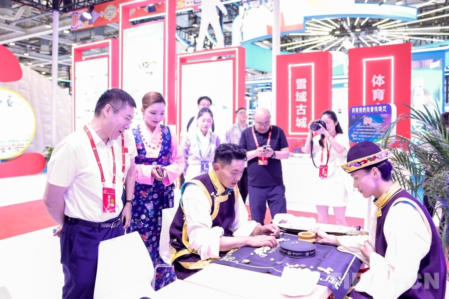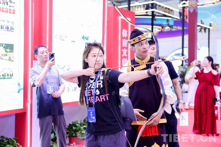 专业艺术团精心排演的《幸福西藏》节目在西藏展厅轮番展演;搭建响箭、秀兹(藏式骰子)体验区,高度还原世界海拔最高的龙舟赛——西藏自治区端午节牛皮船(龙舟)赛开幕式场景,吸引了广大游客驻足观看,踊跃参与民族传统体育项目,参与“画龙点睛”仪式。另外精心准备的体育文创产品,深受游客喜爱,争相领取。