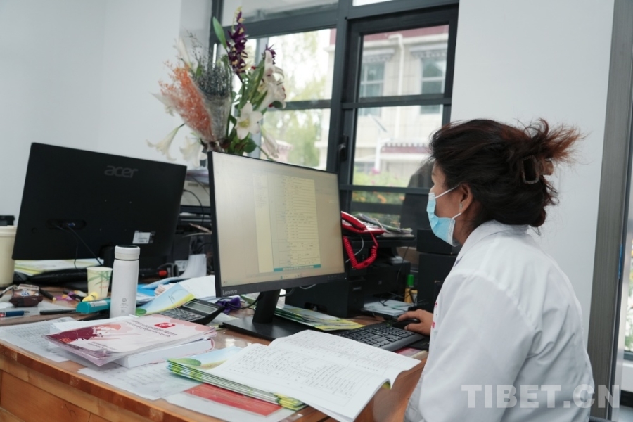 图为茶巴朗村卫生室里,医生在录入村民的体检数据 摄影:王茜