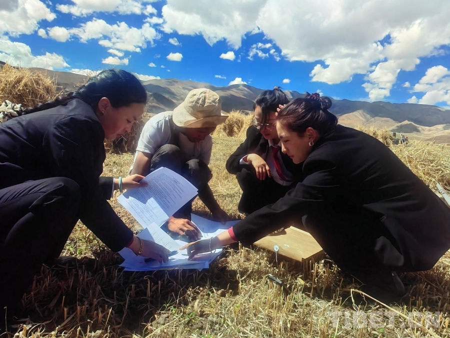 图为定日县人民法院法官深入田间地头,向当地民众普及法律知识