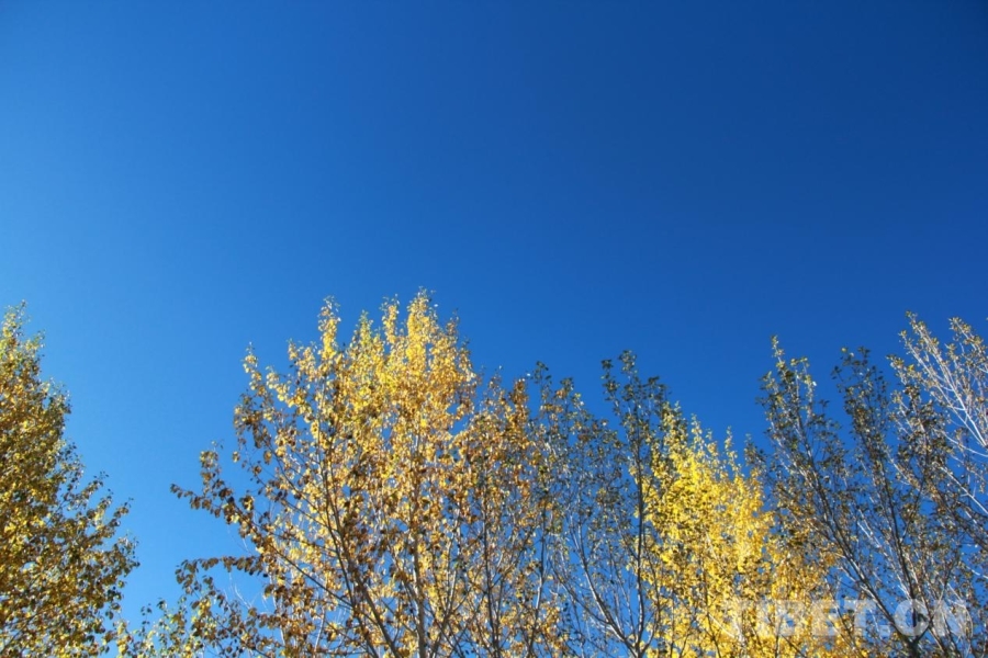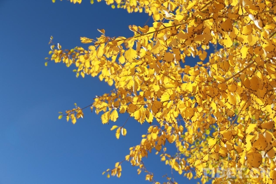 图为阿里狮泉河镇,秋叶与蓝天 摄影:赵钊