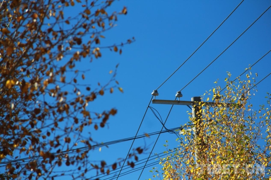 图为阿里狮泉河镇,秋叶与天线仿佛五线谱与音符 摄影:赵钊