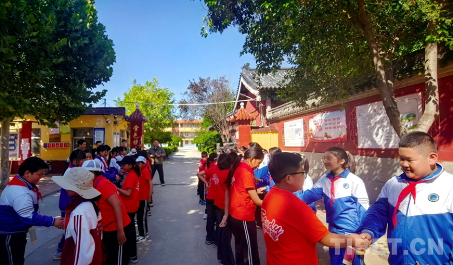 中国西藏网讯 9月25日,西藏自治区阿里噶尔县孔繁森小学的师生来到位于山东省聊城市的堂邑镇中心小学开展联谊活动。堂邑镇是孔繁森同志的故乡。两所学校的孩子们一起瞻仰孔繁森同志事迹、一起做游戏、同唱中国少年先锋队队歌、共绘迎国庆主题画卷……结下了深厚的情谊。