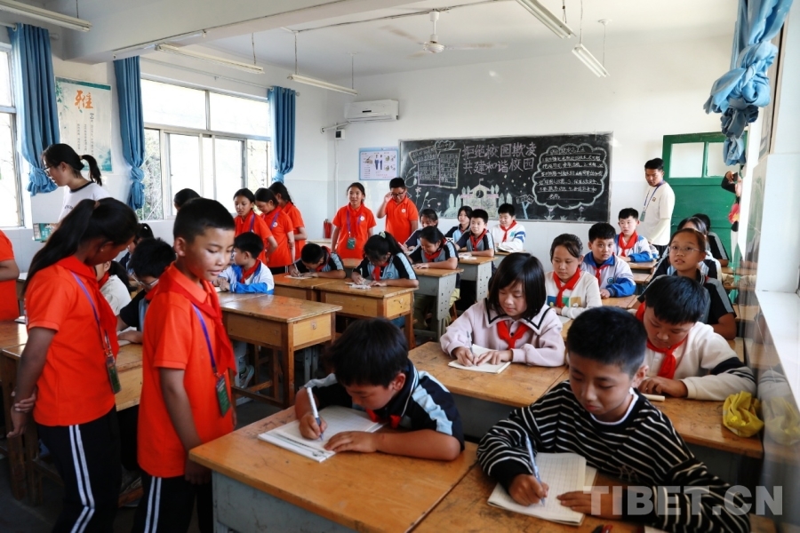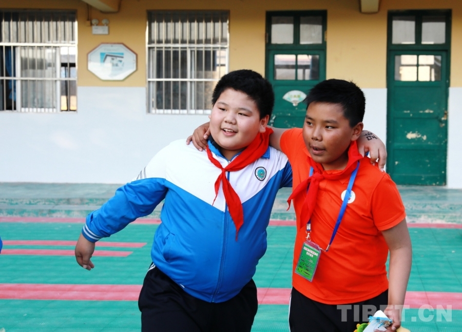 图为西藏阿里噶尔县孔繁森小学的孩子们在山东聊城堂邑镇中心小学开展联谊活动 摄影:刘莉