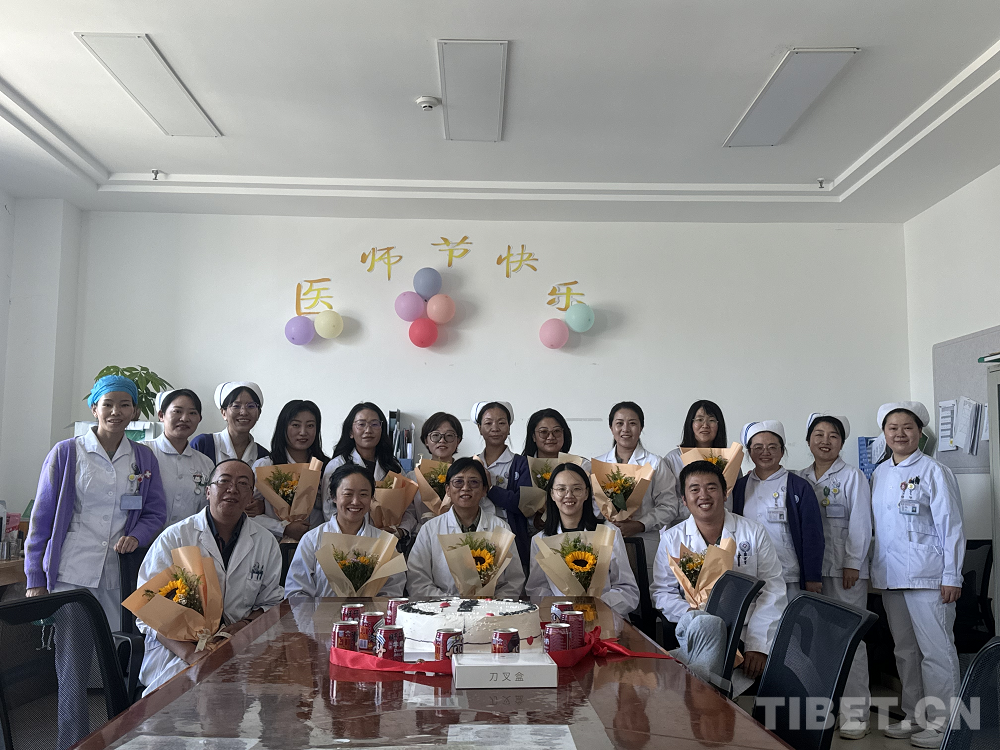 图为马玉超在西藏自治区人民医院庆祝医师节