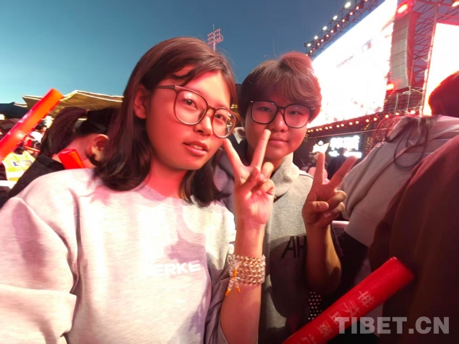 在她身旁的是两位来自西藏大学的学生——米玛仓觉和她的朋友旦增措姆。她们在接受采访时表示,如今拉萨这类文化活动越来越多,只要有空她们就会参加。“这样的场合不仅能见到喜欢的歌手,也让我们在校园生活之外学到新东西,我们非常喜欢。”米玛仓觉说道。
