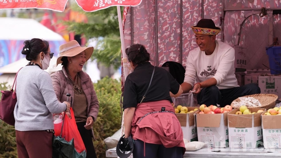 图为10月2日,市民群众在活动现场选购林芝苹果