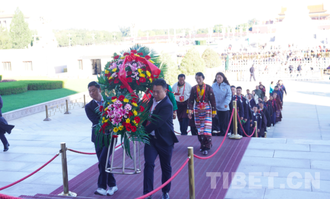 图为西藏林芝波密县基层干部步入毛主席纪念堂 图片由北京建藏援藏工作者协会提供