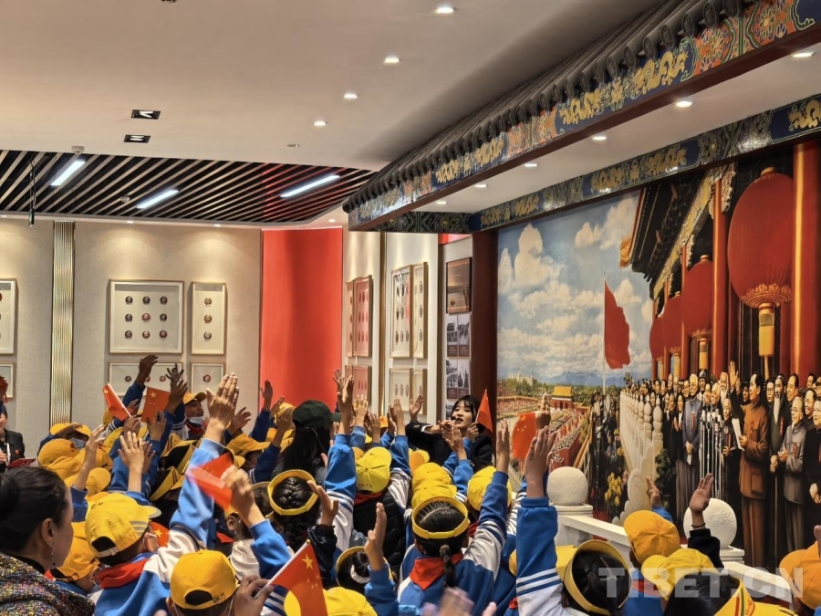 中国西藏网讯 10月21日下午,拉萨市城关区吉崩岗小学四年级380名师生走进西藏毛主席像章博物馆,以“传承红色基因,铸牢中华民族共同体意识”为主题开展沉浸式学习,让红色文化浸润少年心灵。