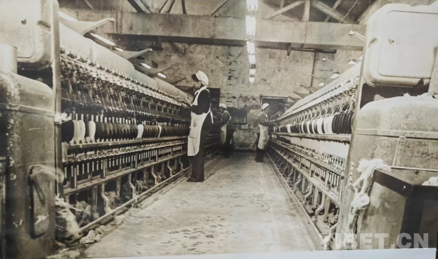 图为昔日的西藏林芝毛纺厂生产车间