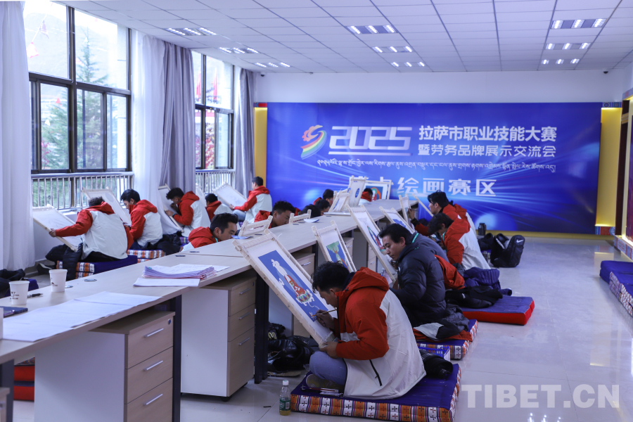 图为唐卡绘画赛区 摄影:贾华加