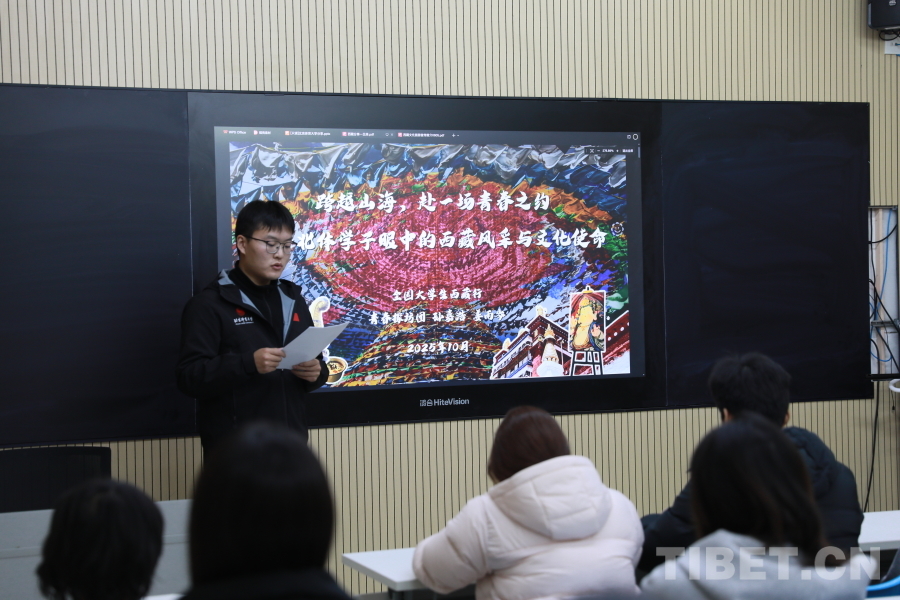 图为孙嘉浩同学分享此次赴藏的亲身见闻。摄影:毕然