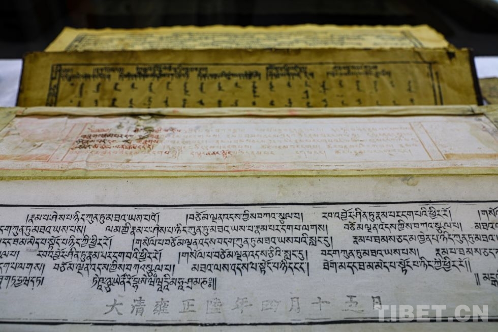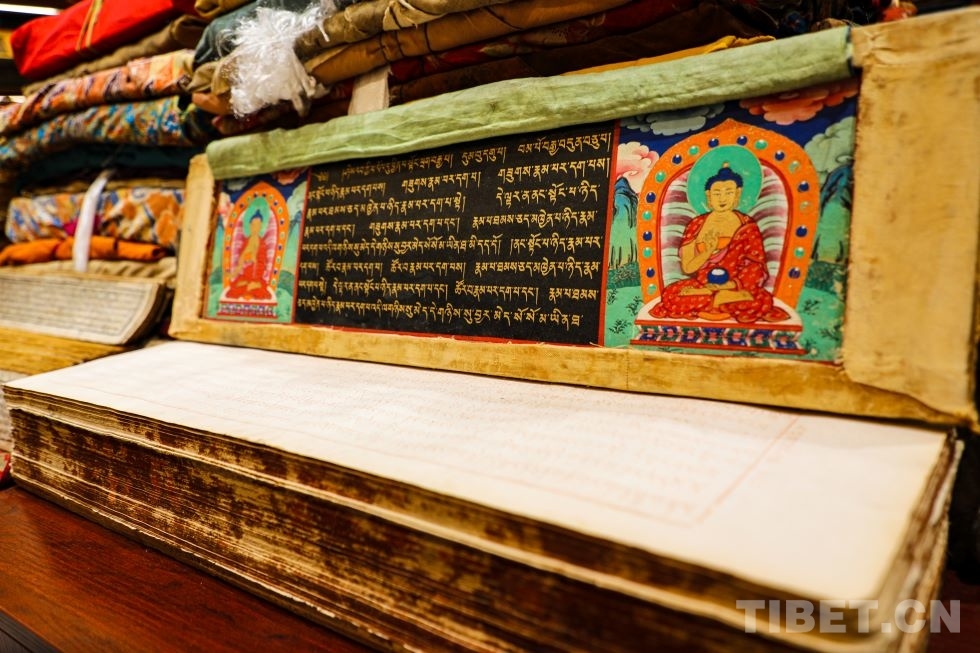 图为在四川省蓉府藏文博物馆中收藏的藏文古籍 摄影:龙真多吉