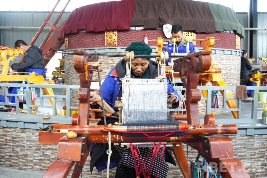 图为在乃东区民族哗叽手工编织专业合作社的厂房中,员工正在编织 摄影:张艺彤
