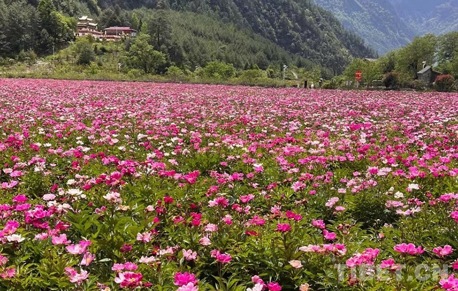 图为最早种植芍药时,色龙村的花海 来源:当地供图