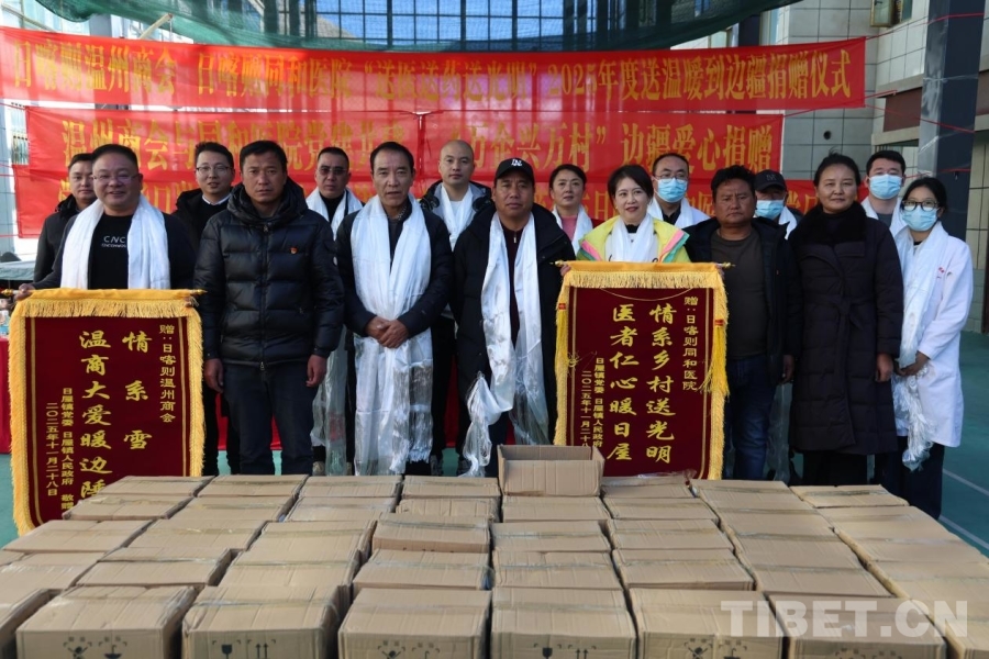 中国西藏网讯 11月28日,西藏日喀则市定结县日屋镇果玛村温情洋溢,西藏日喀则温州商会与同和医院共同举办的2025年度“送医送药送光明”边疆爱心捐赠活动举行。活动聚焦基层医疗需求与民生改善,为当地村民带去健康关怀与社会温暖。