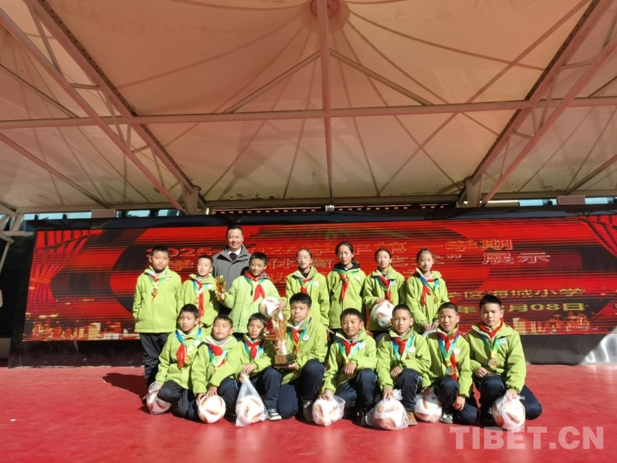 图为拉萨市城关区教育局副局长、党组成员多吉扎西为获奖队伍颁奖 摄影:马静