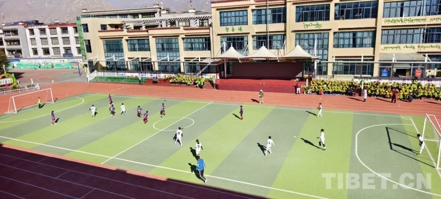 图为拉萨市城关区海城小学第九届“未来之星”校园足球联赛比赛现场 摄影:多吉扎巴