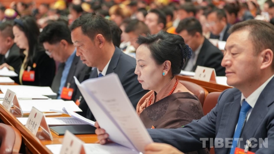图为人大代表听取和审议西藏自治区高级人民法院工作报告 摄影:贾华加