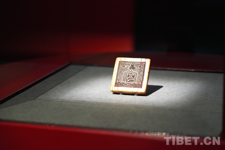 图为现场展出的“萨”字印,此印为元代西藏萨迦地方官员的印章 摄影:王妍丹