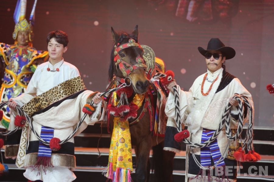 晚会由大型融合性歌舞《欢腾火马》拉开帷幕,将藏北传统“火马”文化符号与现代舞台艺术创新结合。演员身着民族盛装,融入骏马、草原、哲噶等元素,以恢弘音乐与奔放舞姿,营造出热烈祥和的节日氛围,生动展现那曲人民喜迎新年、团结向上的精神风貌。