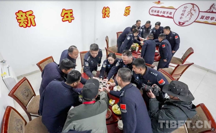 夜幕四合,扎西宗边境派出所民警结束了一天的走访慰问和便民服务,营区里迎来了一场属于边关卫士的新春 “家宴”。