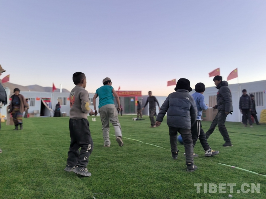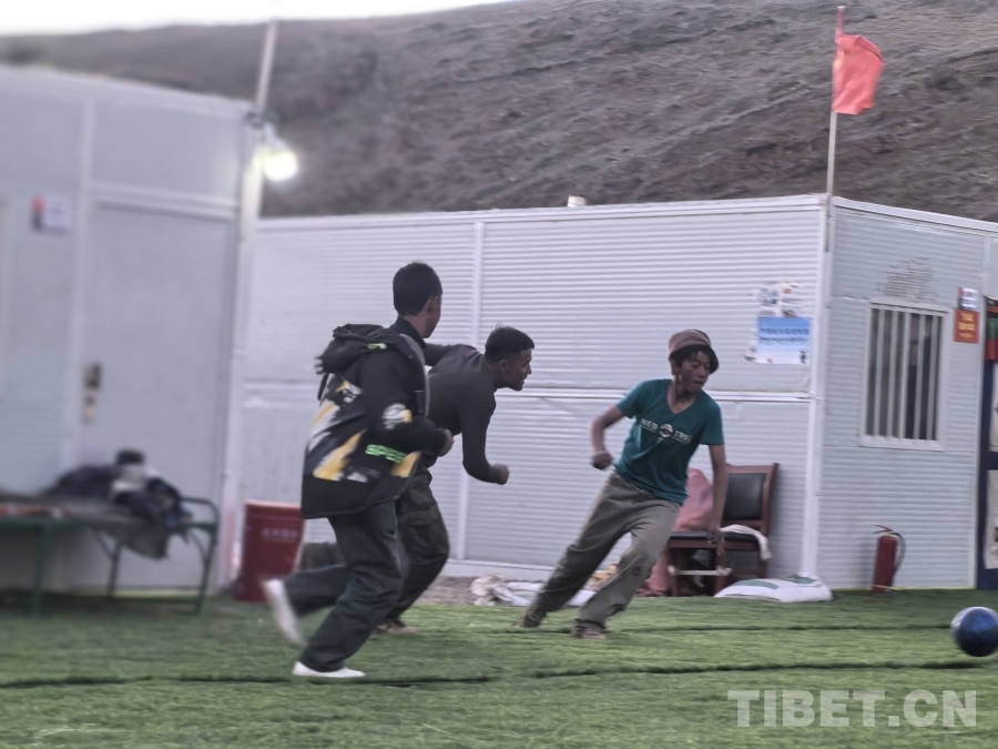 图为少年们在临时安置点的板房间踢足球 摄影:陈明(摄于2025年)