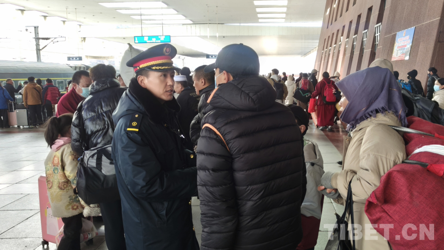 图为春运首日拉萨站为旅客送上祝福