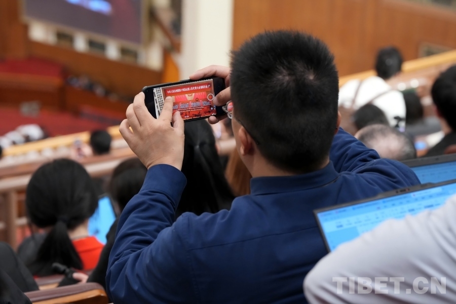 中国西藏网讯 3月5日上午9时,十四届全国人大四次会议在人民大会堂开幕。会场上,中外记者用各自的方式,记录、报道开幕会盛况。(中国西藏网 记者/边子捷 刘莉)