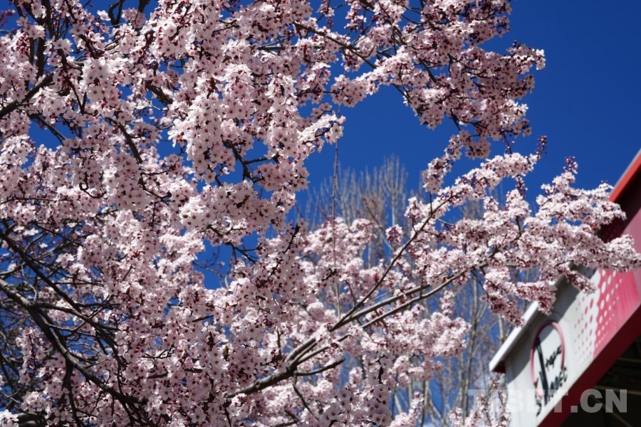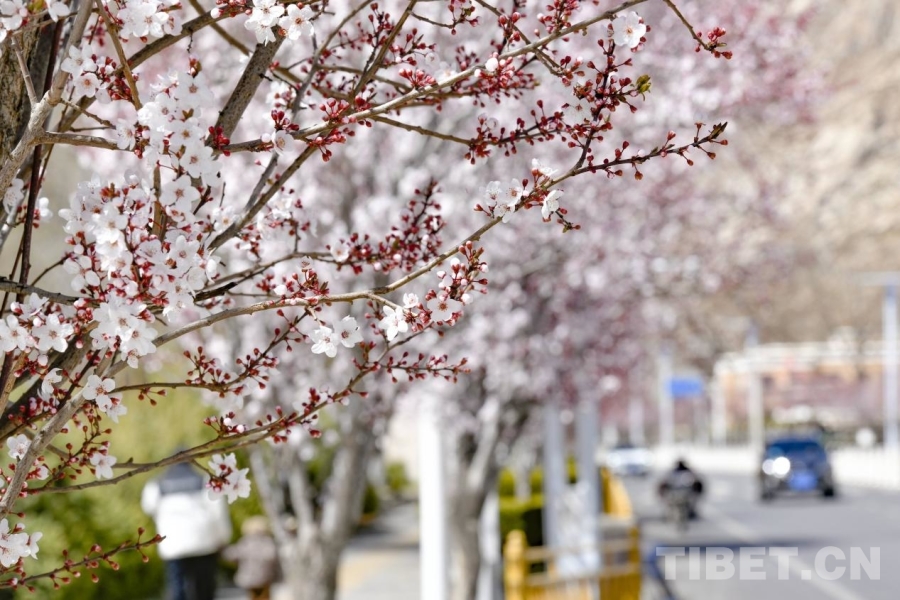 西藏拉萨慈松塘中路盛开的桃花 摄影:张艺彤