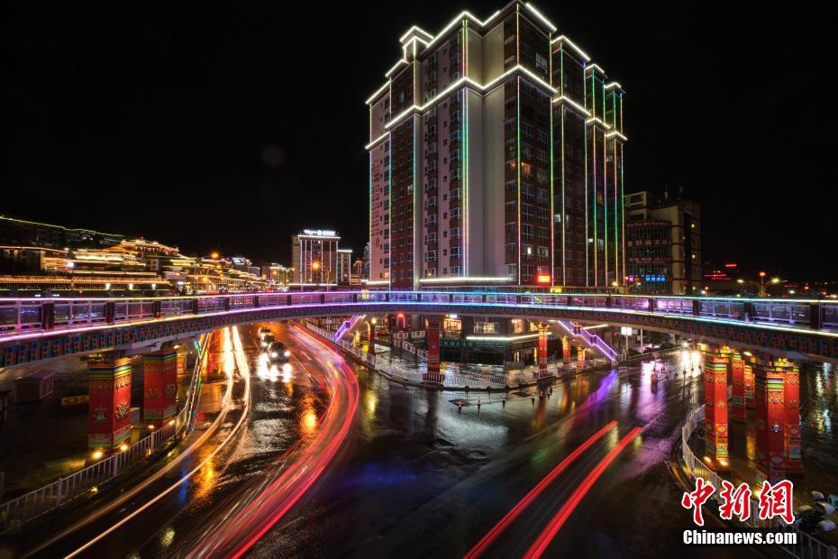 图为7月29日,昌都市昌庆街夜景。中新社记者 何蓬磊 摄