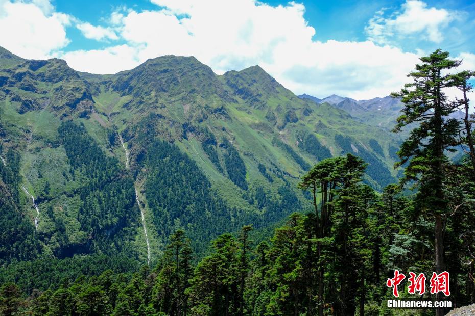 图为玉麦乡的原始森林和远处高山间的飞瀑。江飞波 摄