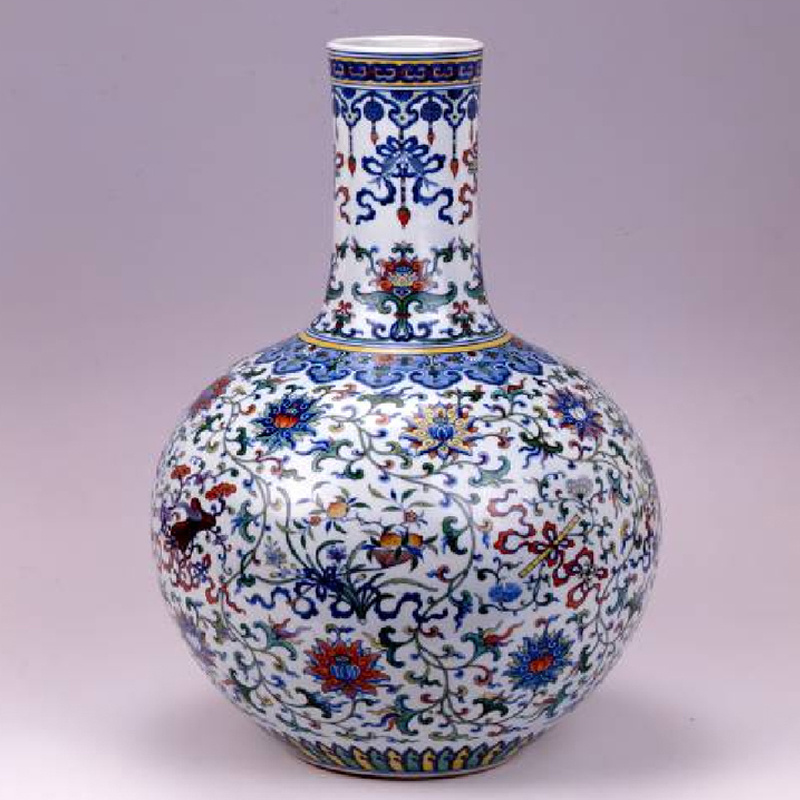 图为布达拉宫内珍藏的雍正斗彩缠枝莲托暗八仙天球瓶 来源:布达拉宫官网