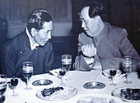 1951年,毛泽东设宴庆祝“十七条协议”签订,左为阿沛•阿旺晋美,图片来源网络。