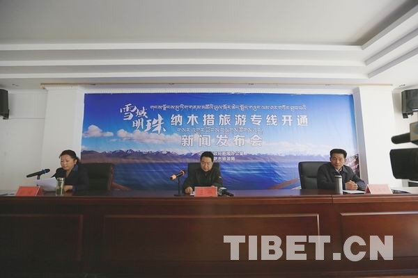 雪域明珠纳木措旅游专线正式开通。游客可以选择明码标价的专线车辆前往纳木错旅游观光。图为发布会现场。摄影:杨月云