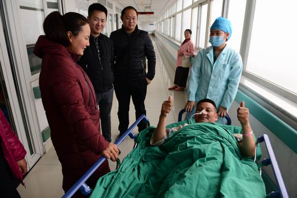 达娃大叔是个乐观的人,当躺在床上准备进手术室的那一刻,他朝身边的人竖起了大拇指:“放心,放心,我对手术有信心,我对医院有信心,我对医生有信心,手术一定能成功。”