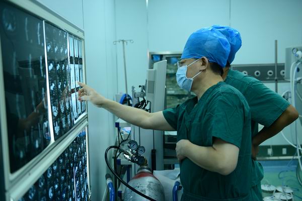 图2 佑安医院院长李宁带领团队对病情做术前再回顾。 摄影:王旭华
