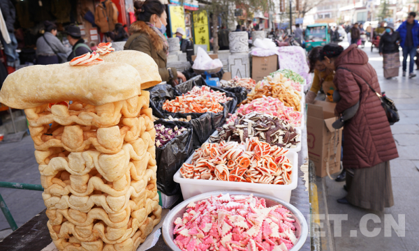 中国西藏网讯 今年的藏历新年和春节为同一天,忙碌了一年的人们也放下了手中的工作,带着家人走上街头挑选各式年货。在拉萨八廓街老城区的冲赛康市场,来自各地的人们挤满了每一个摊位。熙熙攘攘的市场里面,叫卖声,砍价声此起彼伏。热闹的新年气氛愈发浓厚了。