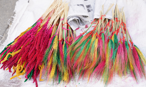 最多彩的是“罗萨梅朵”(藏语意为新年花),是手工制作、色彩各异的麦穗状花朵,寓意着新的一年是美满、丰收的幸福年。彩色的麦穗象征着生活的红红火火。