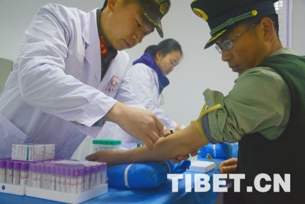 图为士兵正在接受抽血化验