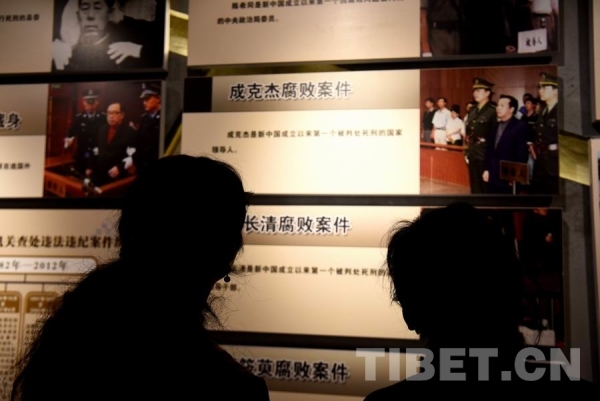 在参观现场,老同志们跟随讲解员由“从严治党、严惩腐败”展厅开始,先后参观了“铁腕重拳、警钟长鸣”“严守党纪国法、维护团结统一”“大美西藏、幸福拉萨”四个展厅。